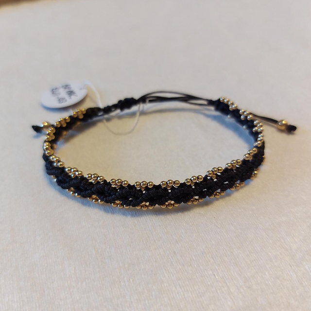 bracelet en micro-macramé qui arbore un motif infini orné de perles dorées. Un bijou raffiné, idéal pour illuminer vos tenues de fêtes.